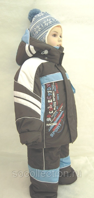 Костюм для мальчика.Подстежка пуховая,состав 90% пух,10% перо,полностью съемная,с рукавами.В конструкции подстежки применена специальная дополнительная ткань "барьер ветер",что исключает сквозное продувание.Утеплитель в курточке и полукомбинезоне- синтепон экософт плотностью 200 г/м2. Ткань верха – джордан (корея), износостойкая.Подкладка хлопкосодержащая. Полукомбинезон со спинкой на бретелях,внизу снегозащитная шторка ("снеговик").В рукавах эластичные трикотажные манжеты.Ветрозащитная шторка в капюшоне.Регулировка объема капюшона, кулиска по низу куртки.Оригинальный принт.