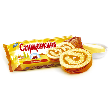 Нежный неглазированный рулет из воздушного бисквита с начинкой на основе сгущенного молока. Рулет содержит 21% сгущенного молока.